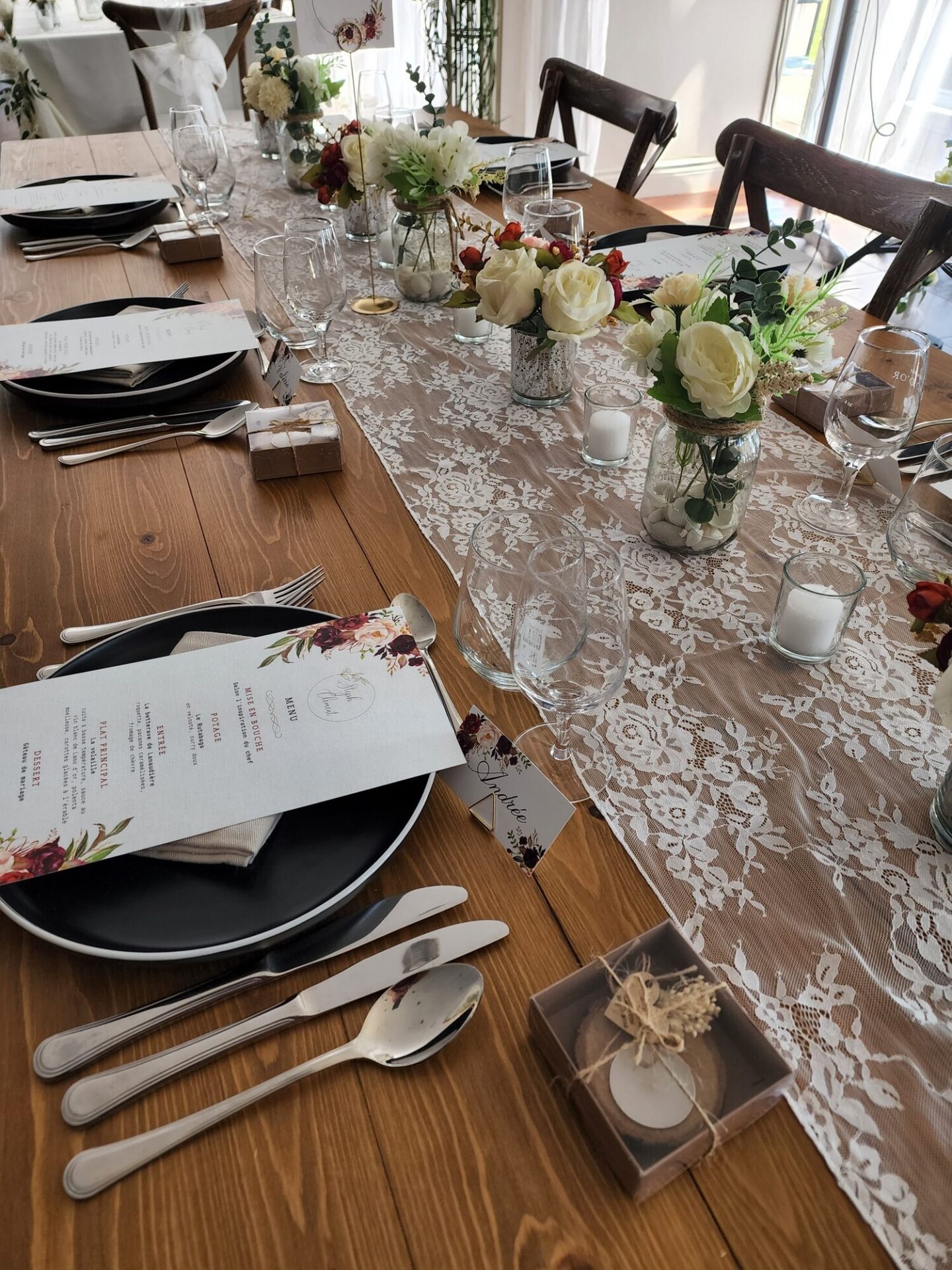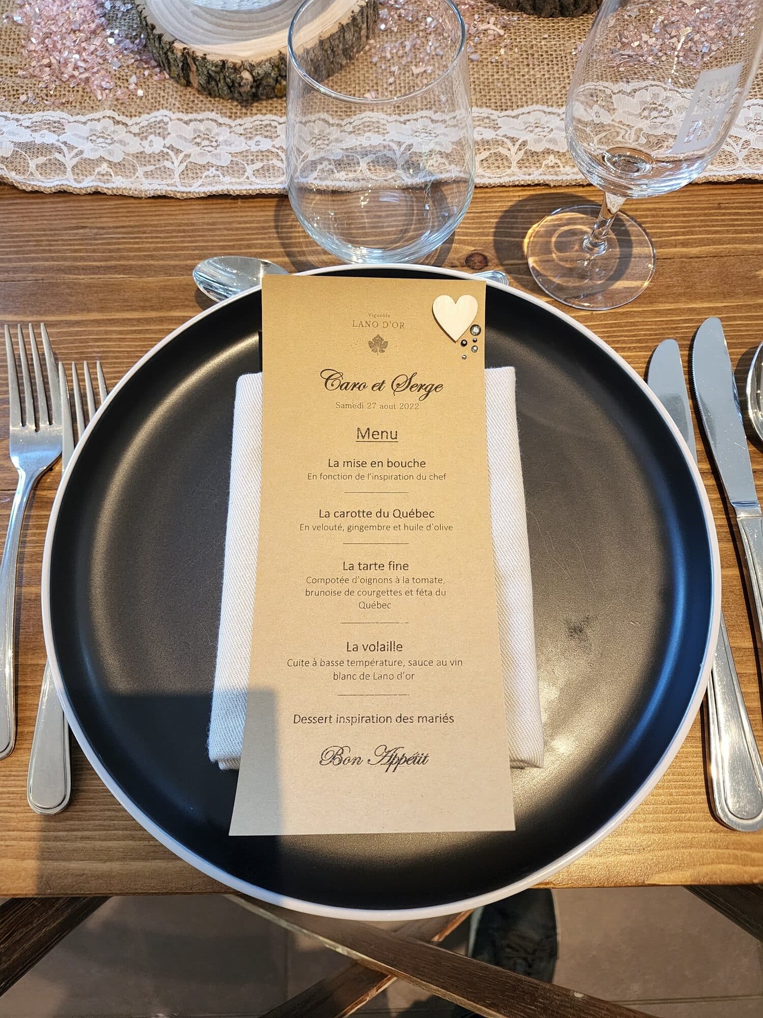 Bruno et son équipe, possèdent une solide expérience pour les mariages. Autour d’une cuisine française axée sur les produits de la ferme et les produits locaux, vous pourrez apprécier un menu 5 services modernes et savoureux. Il sera facile de le personnaliser en fonction de votre attente. Le vignoble sera privatisé pour en profiter pleinement.